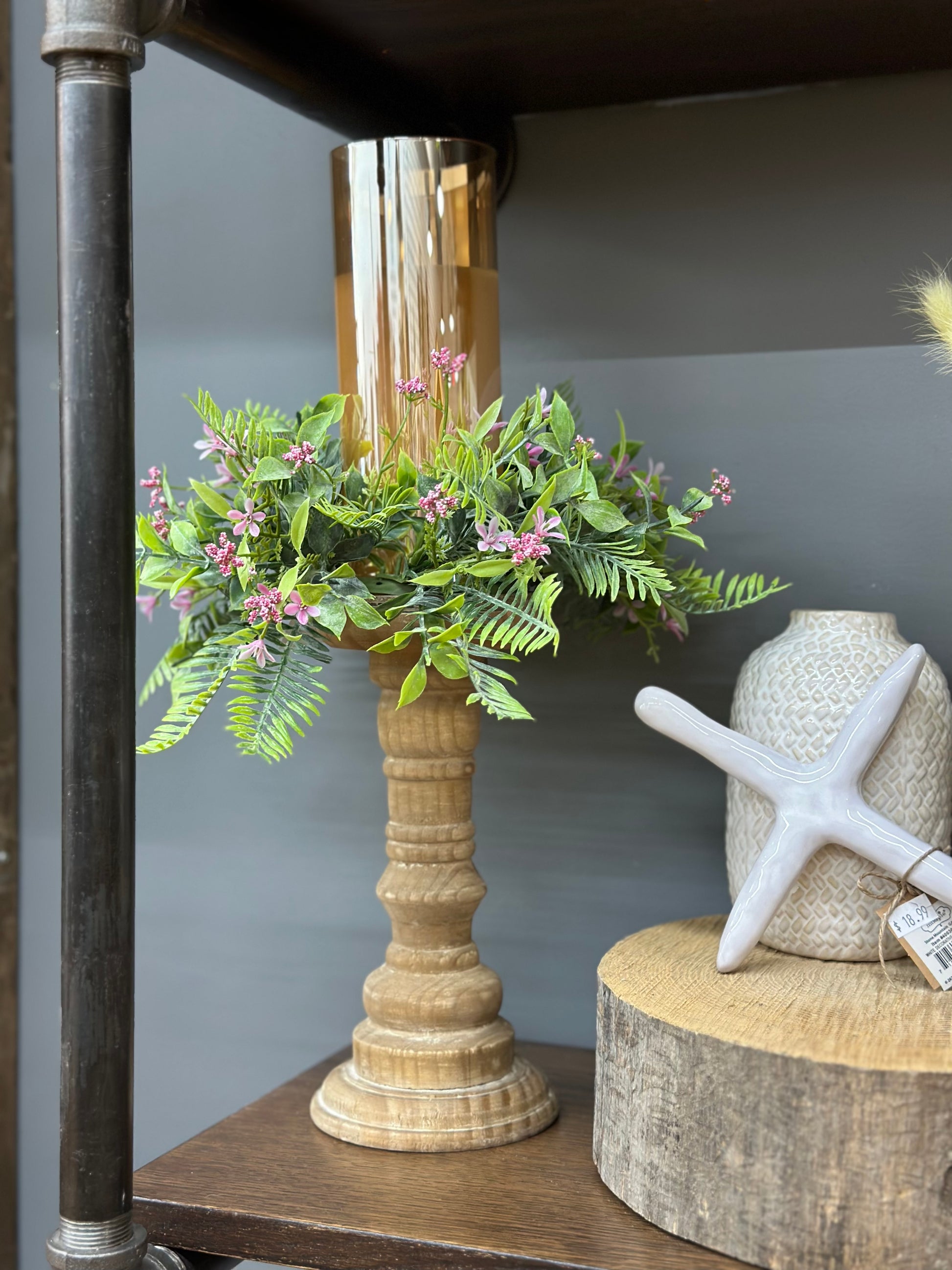 9” Aged Wood Pillar Candle Stick