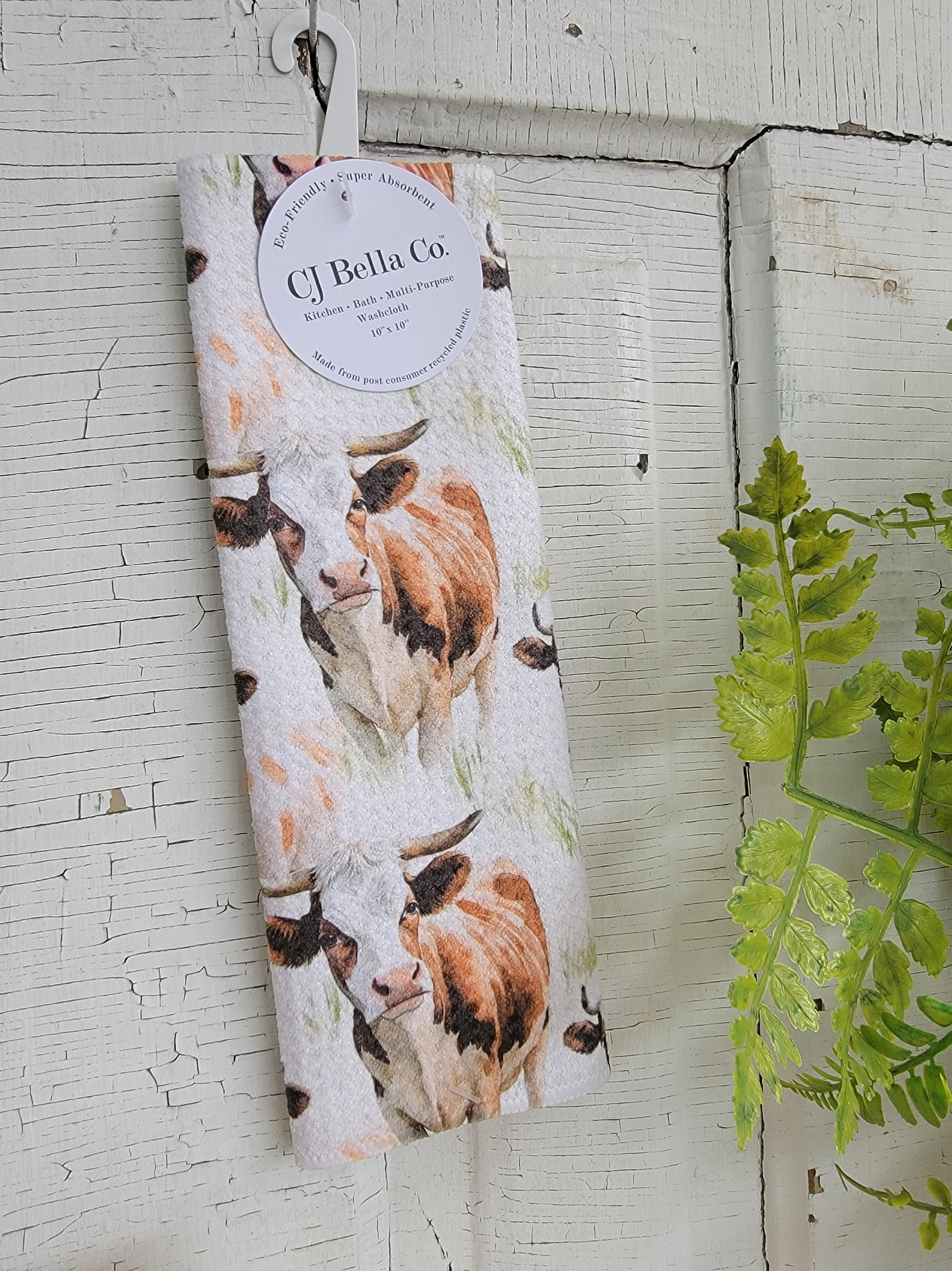Our Eco-Friendly washcloths are 10" x 10". Encompassing style and function, our waffle weave Eco-Friendly washcloths are made from a polyester blend that incorporates 1 recycled plastic water bottle per towel. The waffle weave pattern not only helps them absorb 5 x 7 times their weight, but also dry quicker. Washcloth size and patterns will vary slightly, edges may not be hemmed evenly. Designed and Printed in the U.S.A.
