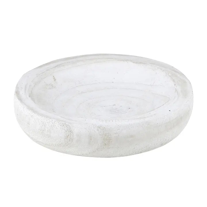 This bowl made of durable Paulownia wood is the perfect addition to any home. Great for serving food or layering candles and other home decor. Now available in white to seamlessly fit into any home. · Material: Paulownia Wood · Size: 6" Dia · Care Instructions: Spot Clean Only