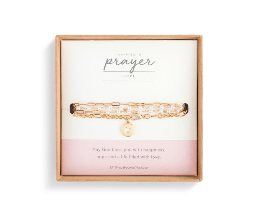The Necklace/Bracelet -Love is handcrafted to perfection with a long 35” chain. This 2-in-1 women’s accessory can be worn as either a long necklace or a stylish, stackable bracelet. With a trendy, multi-bead look and a meaningful sentiment that reads, “May God bless you with happiness, hope and a life filled with love,” gifting has never been easier. Whether it is for the holidays, birthdays, special occasions or just to say you care, aunts, moms, grandmas, sisters, co-workers and friends will appreciate the thought and meaning behind it. Style the Necklace/Bracelet with one of our corresponding Wrapped in Prayer Shrobes that also shares a similar, uplifting message