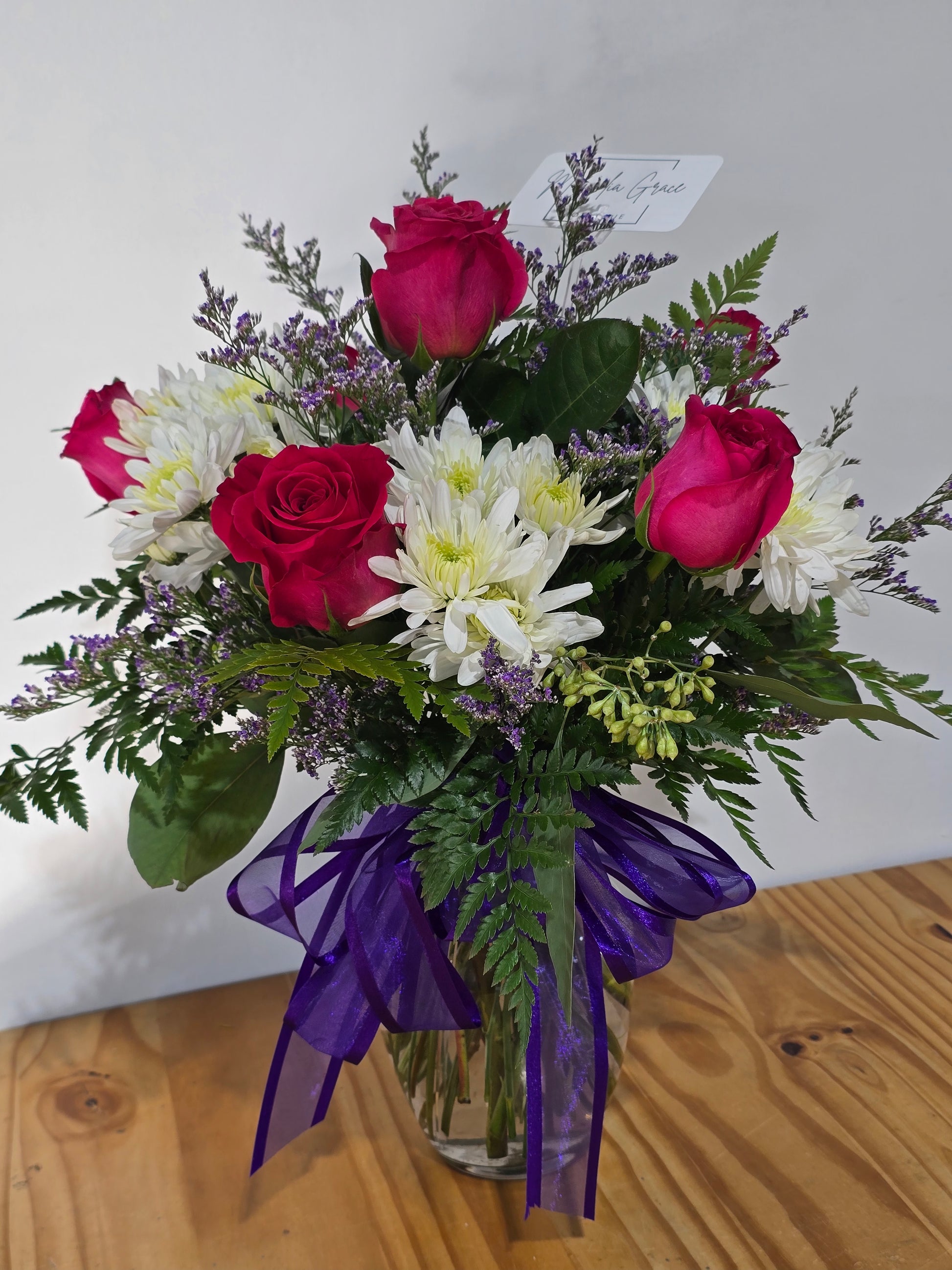 6 rose vase (shades of pink, white, or red)